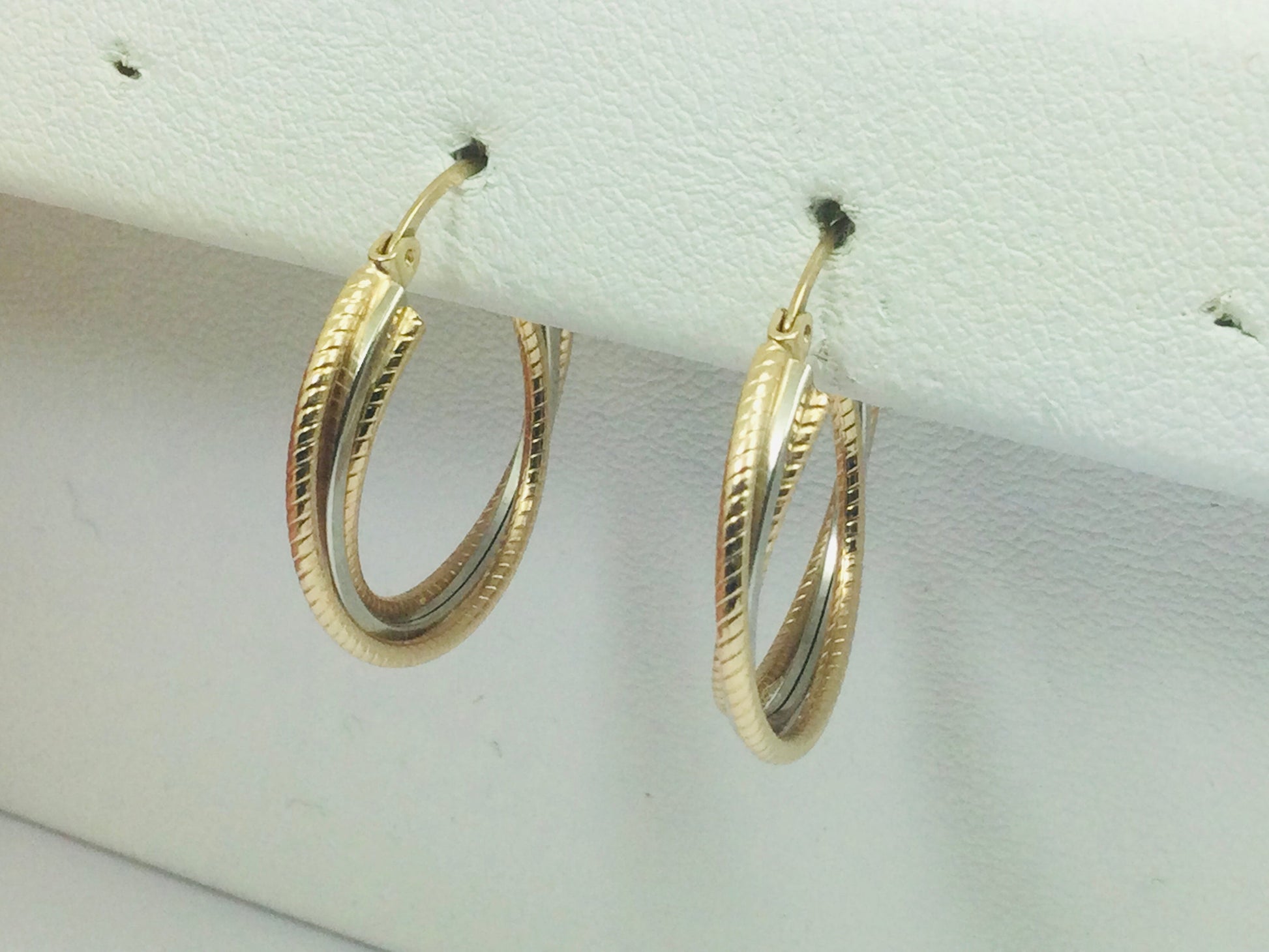 10k Tri Colour Gold Hoop Earrings.