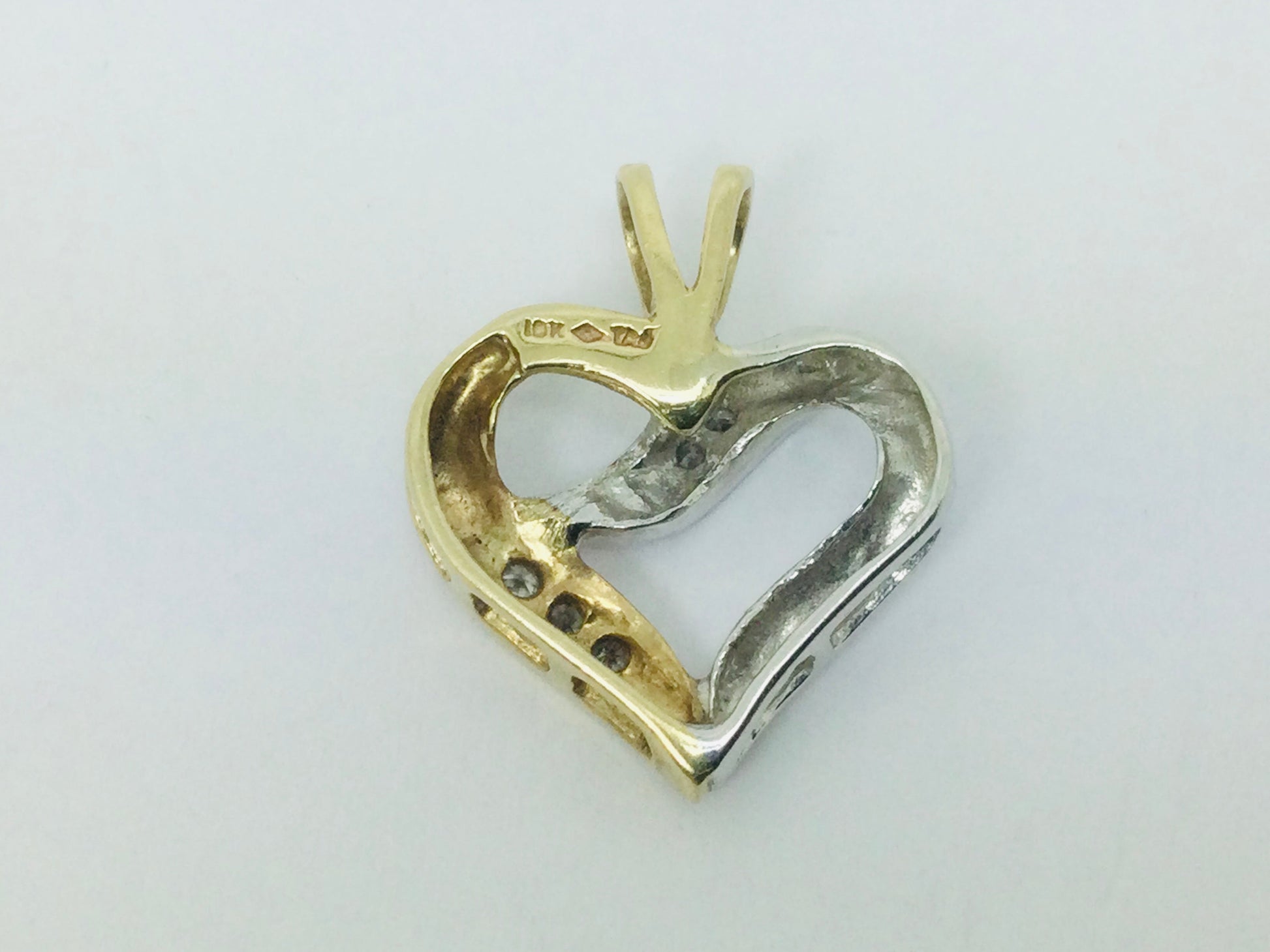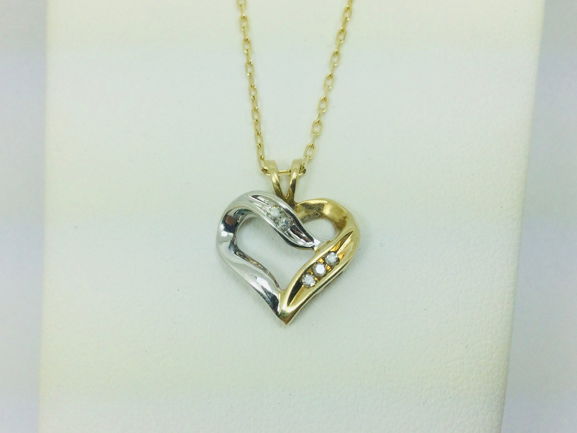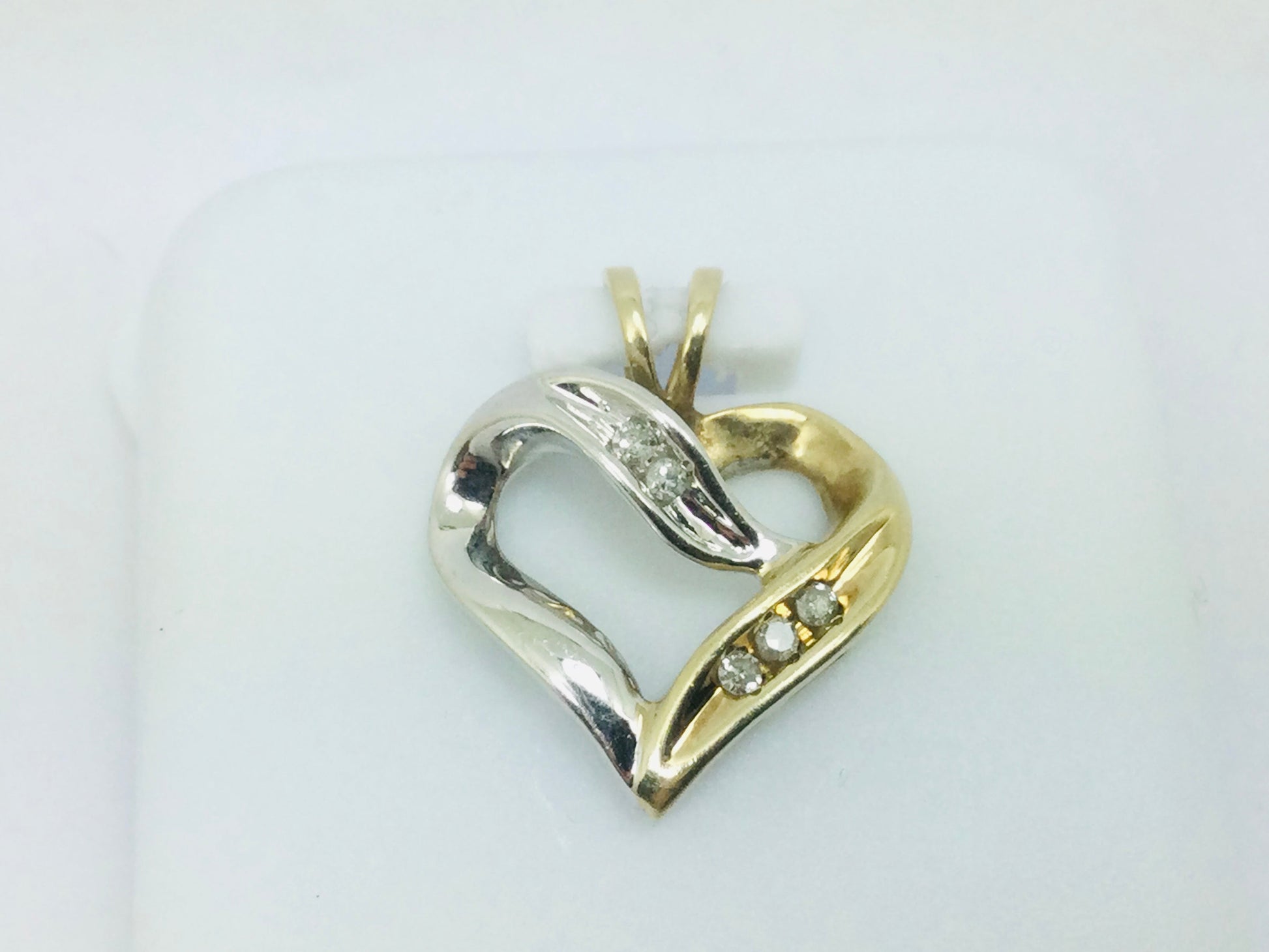 10k White and Yellow Gold Diamond Heart Pendent Set With;