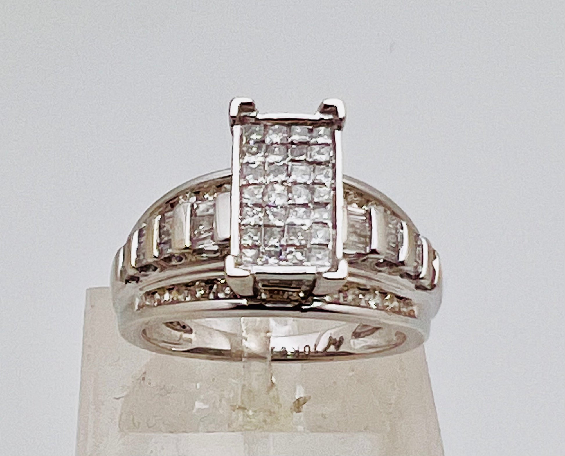 10k White Gold 78pt Round, Princess, and Baguette Diamond Ring