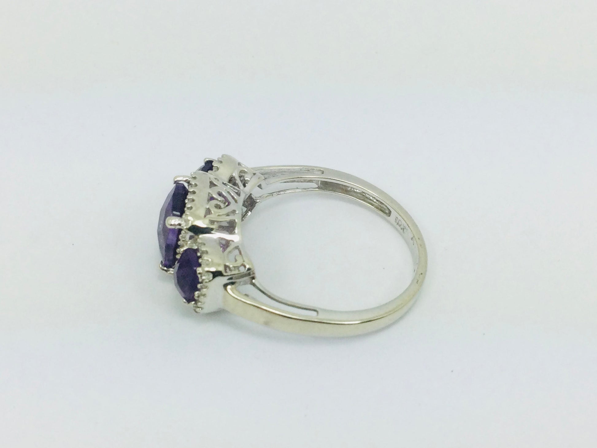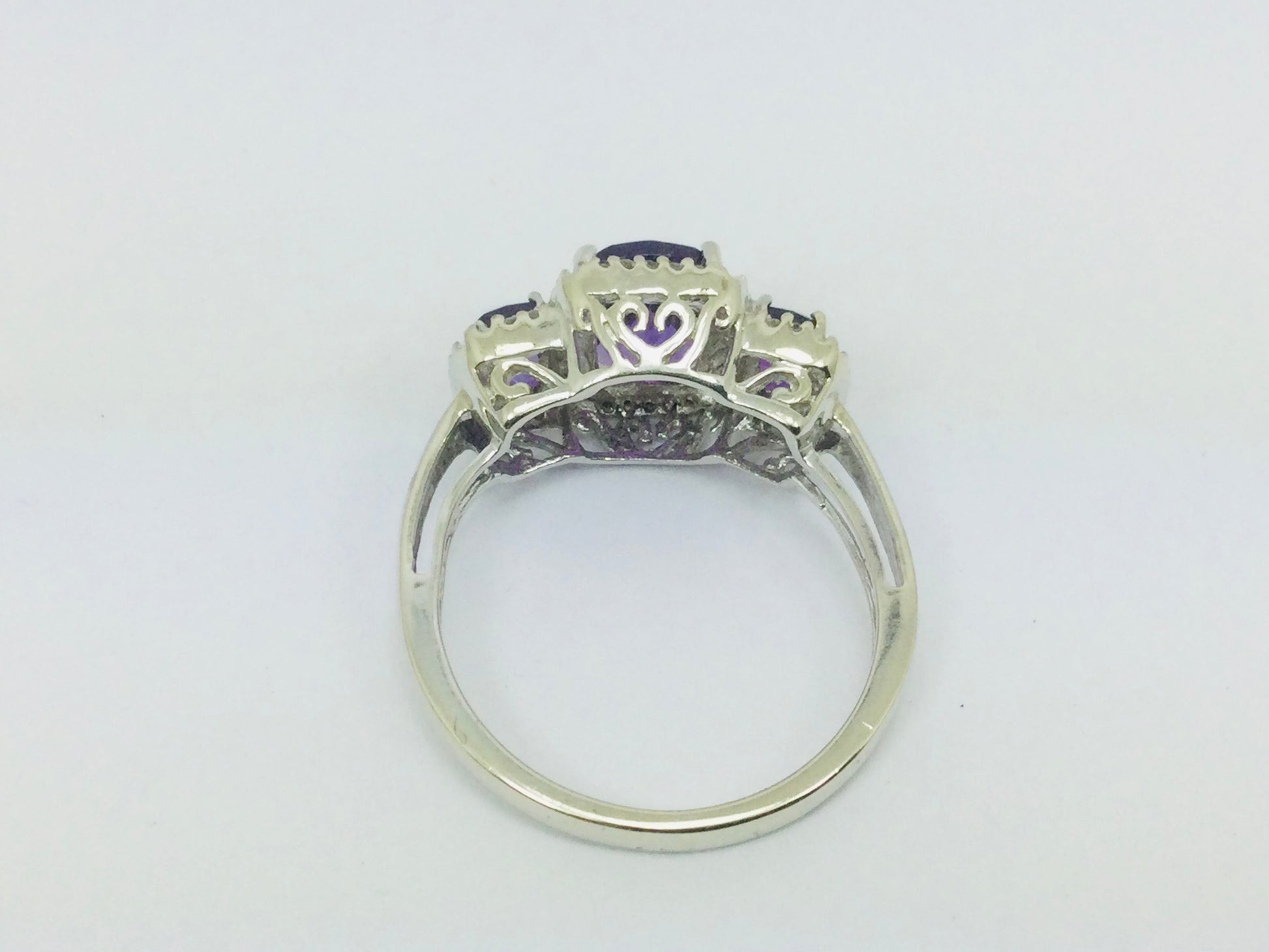 10k White Gold Cushion Cut Amethyst February Birthstone & Diamond Halo Ring