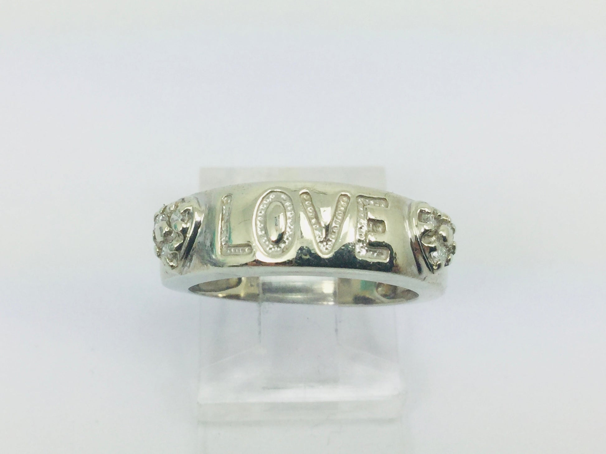 10k White Gold 'Love' 12pt Diamond Heart Ring
