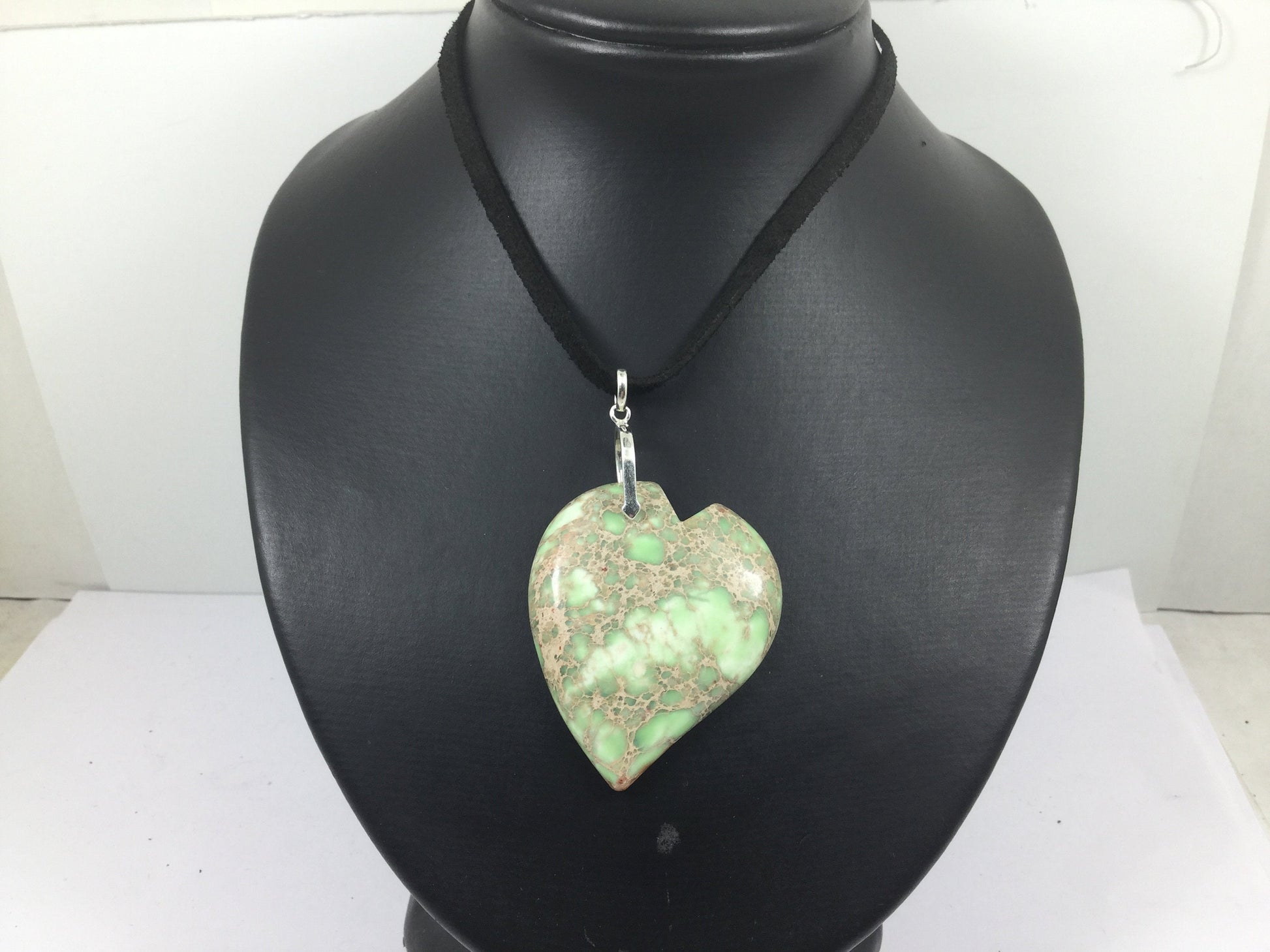 Gorgeous Genuine Gemstone Heart Shaped Sea Jasper On Leather Cord Silver Lobster Claw